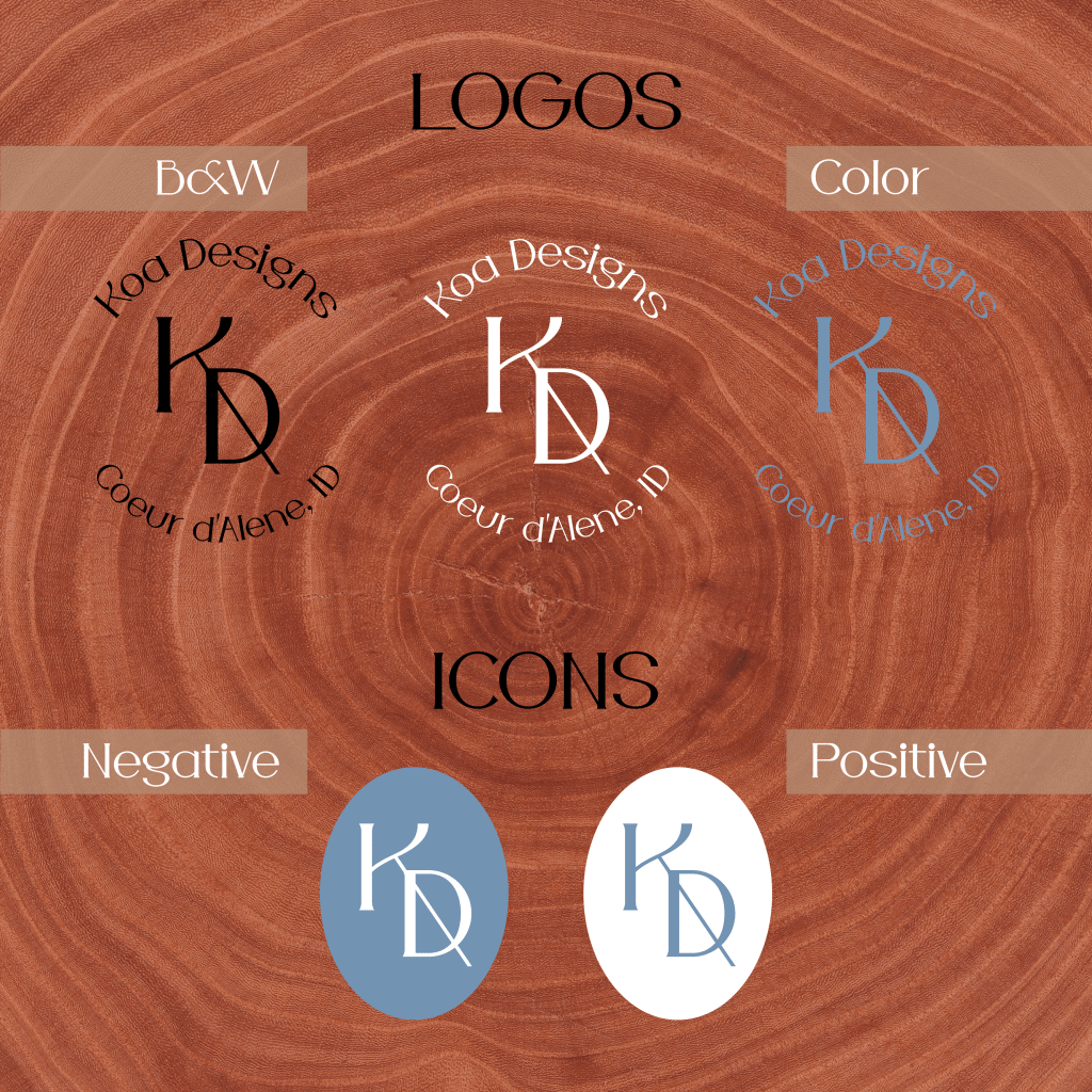 Overview: Logo development for an Interior Design Services company. Their goal was to have the logo incorporate Koa Wood, the type of wood behind their name. Sticking with this theme, I delivered a clean, circle logo and icon pair, including wood grain background versions. The chosen typeface has a vintage flair and refined details for a touch of elegance.